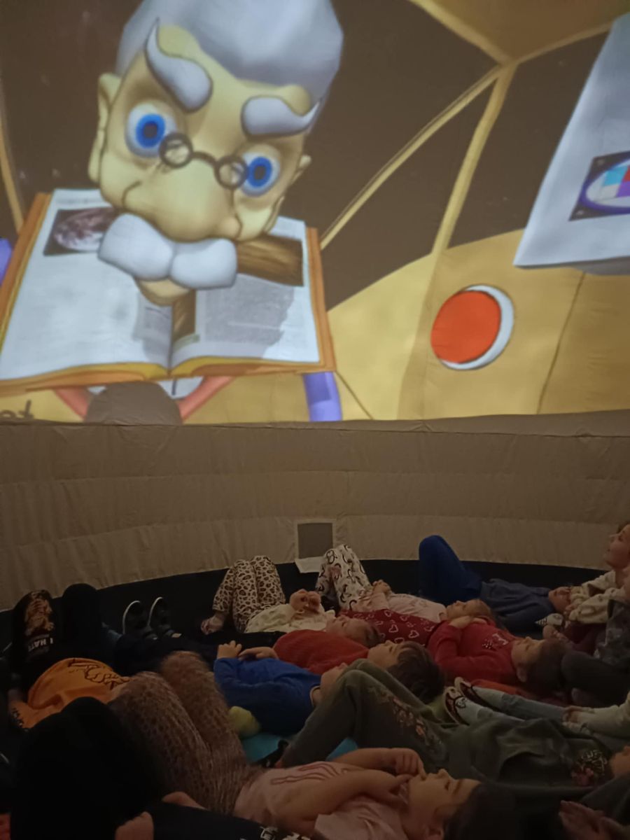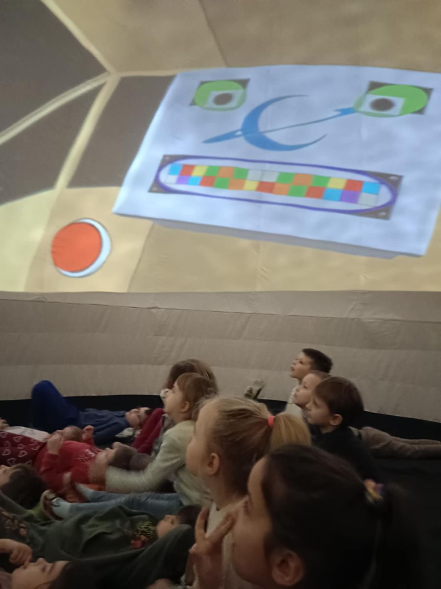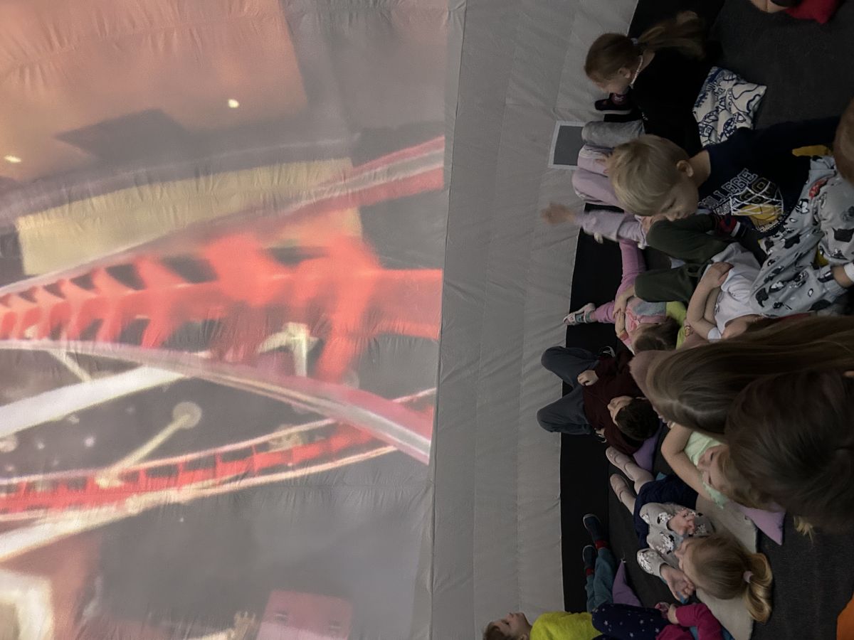 🌍 Naszą placówkę odwiedziło mobilne planetarium, które zabrało dzieci w niezwykłą podróż w kosmos. Podczas seansu uczestnicy obejrzeli film o planetach Układu Słonecznego, poznając ciekawostki o każdej z nich oraz dowiadując się, jakie warunki panują na poszczególnych planetach. Na zakończenie dodatkowa atrakcja – emocjonująca przejażdżka wirtualnym rollercoasterem, która dostarczyła mnóstwo radości i niezapomnianych wrażeń. 🚀🎢 To była wyjątkowa lekcja astronomii połączona z dobrą zabawą!