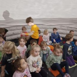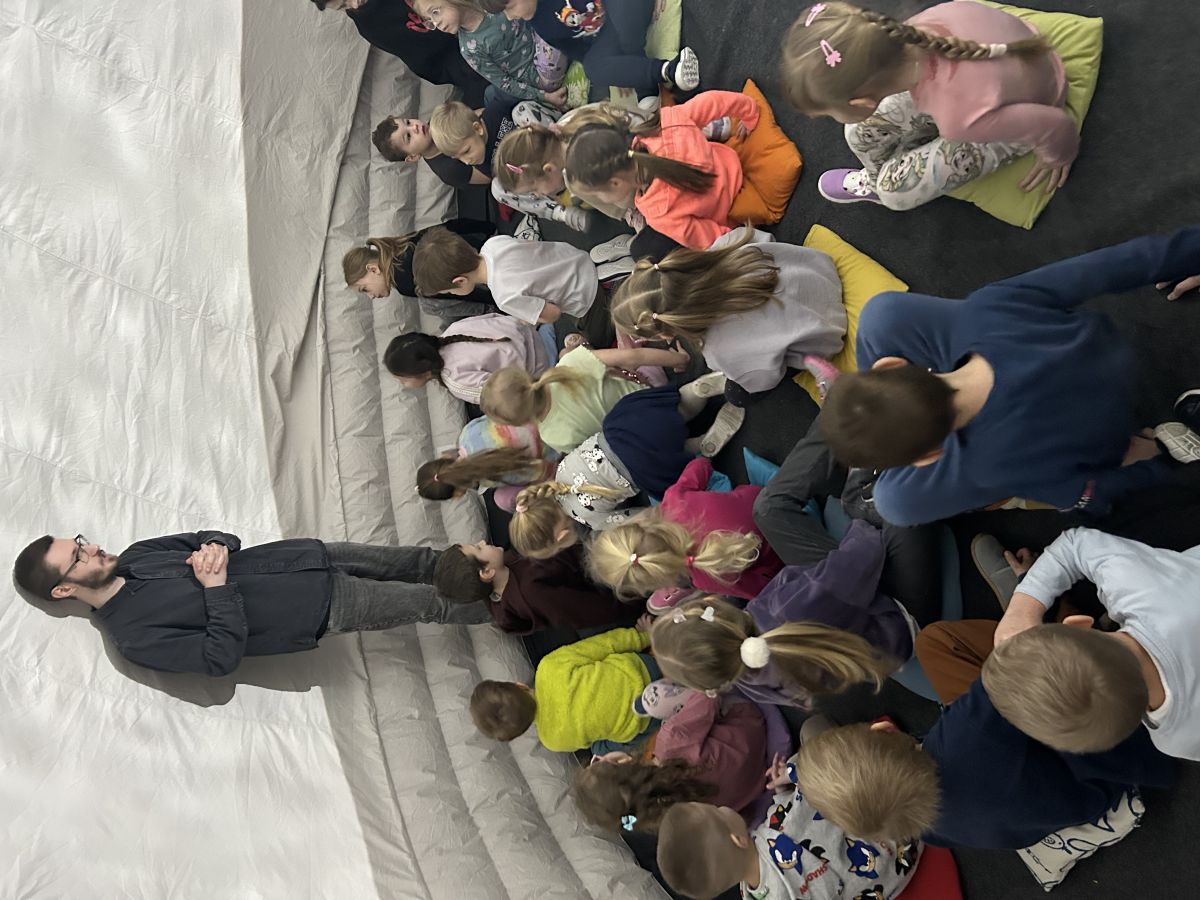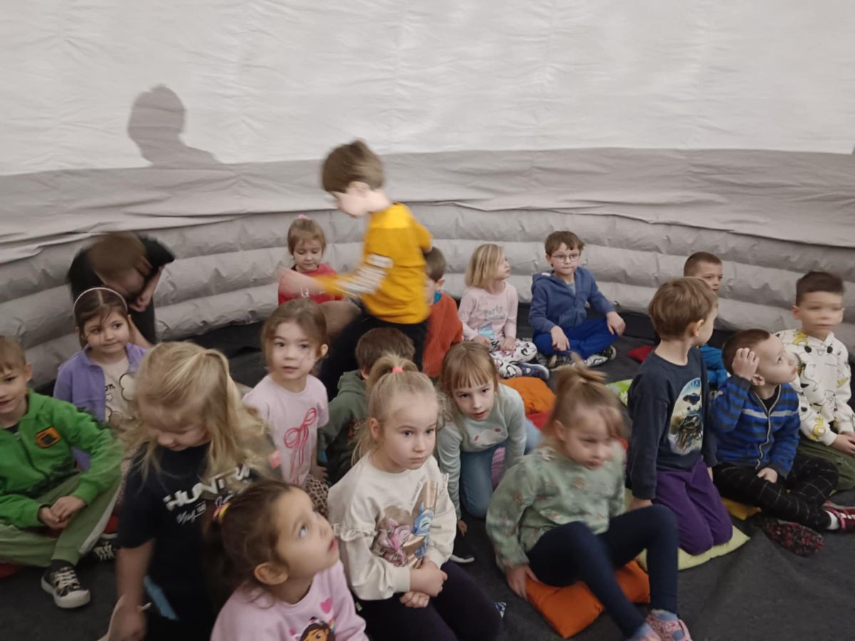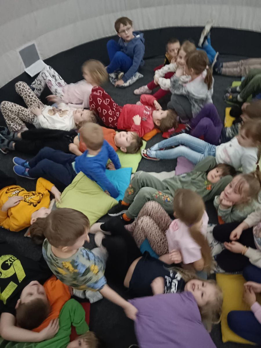 🌍 Naszą placówkę odwiedziło mobilne planetarium, które zabrało dzieci w niezwykłą podróż w kosmos. Podczas seansu uczestnicy obejrzeli film o planetach Układu Słonecznego, poznając ciekawostki o każdej z nich oraz dowiadując się, jakie warunki panują na poszczególnych planetach. Na zakończenie dodatkowa atrakcja – emocjonująca przejażdżka wirtualnym rollercoasterem, która dostarczyła mnóstwo radości i niezapomnianych wrażeń. 🚀🎢 To była wyjątkowa lekcja astronomii połączona z dobrą zabawą!