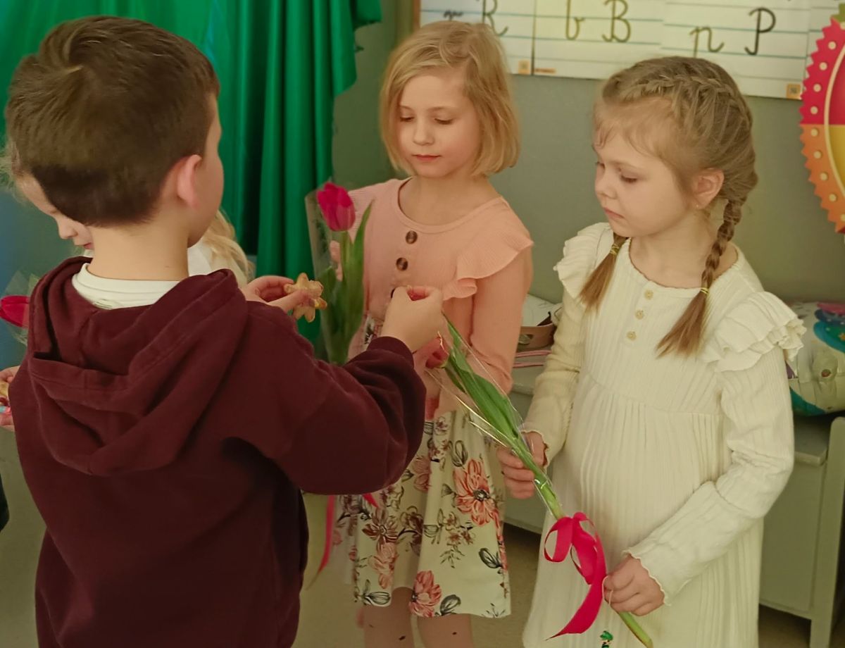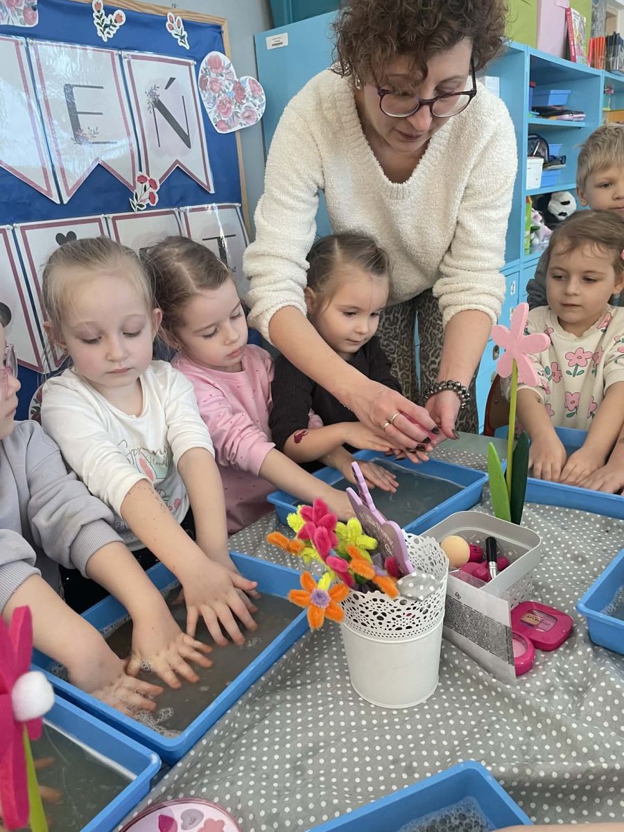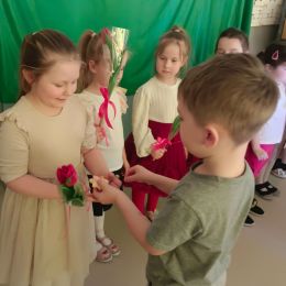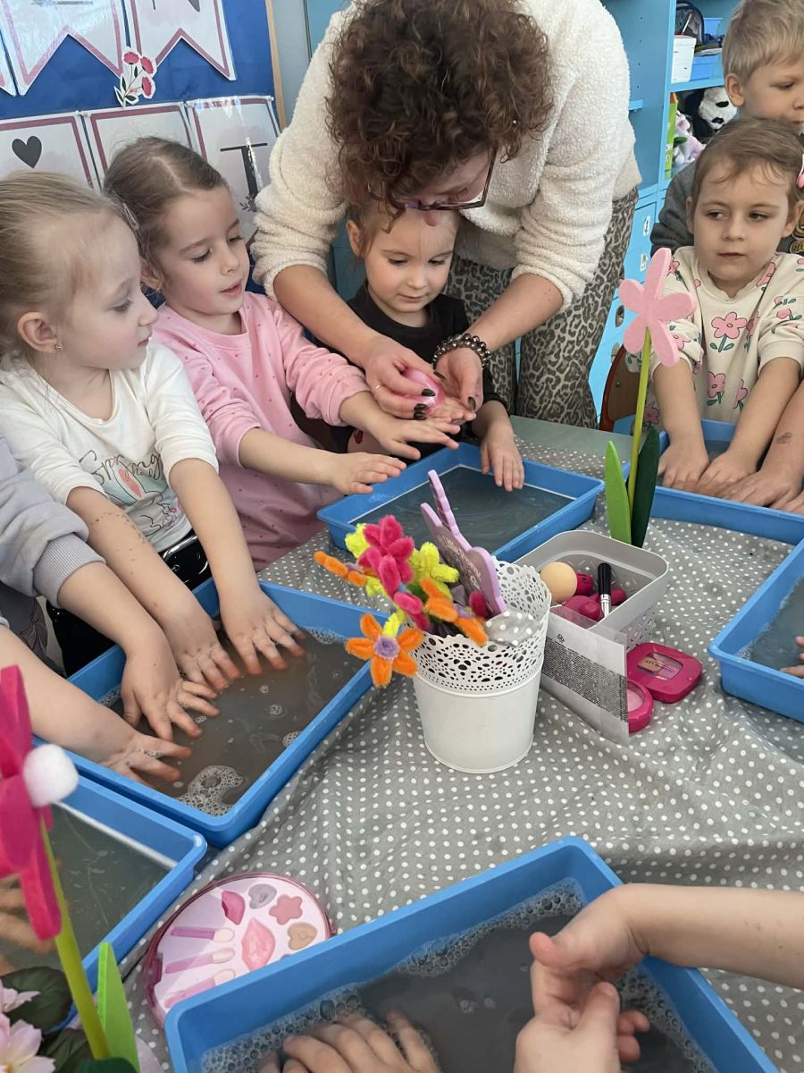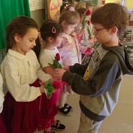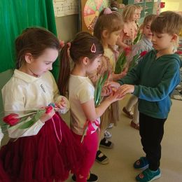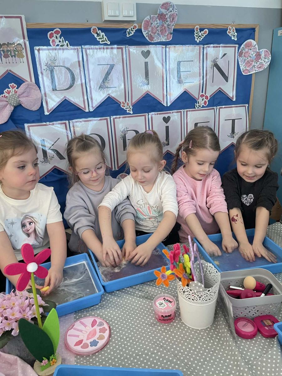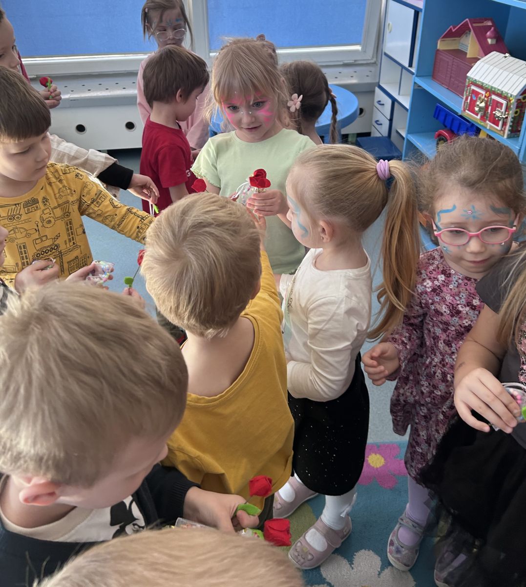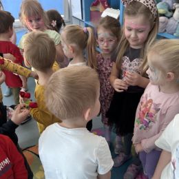 Dzień Kobiet upłynął w radosnej, pachnącej kwiatami, miłej atmosferze. Chłopcy wręczyli dziewczynkom kwiaty również te wykonane własnoręcznie, upominki oraz złożyli serdeczne życzenia. W grupie 2 na małe damy czekało „spa dla dłoni”, malowanie twarzy, a dziewczynki tworzyły kolorowe bransoletki z koralików. W starszych grupach to mali mężczyźni wykonali biżuterię dla koleżanek. Wspólna zabawa sprawiła wszystkim wiele radości i była okazją do okazania życzliwości oraz uprzejmości wobec innych. 🌷✨