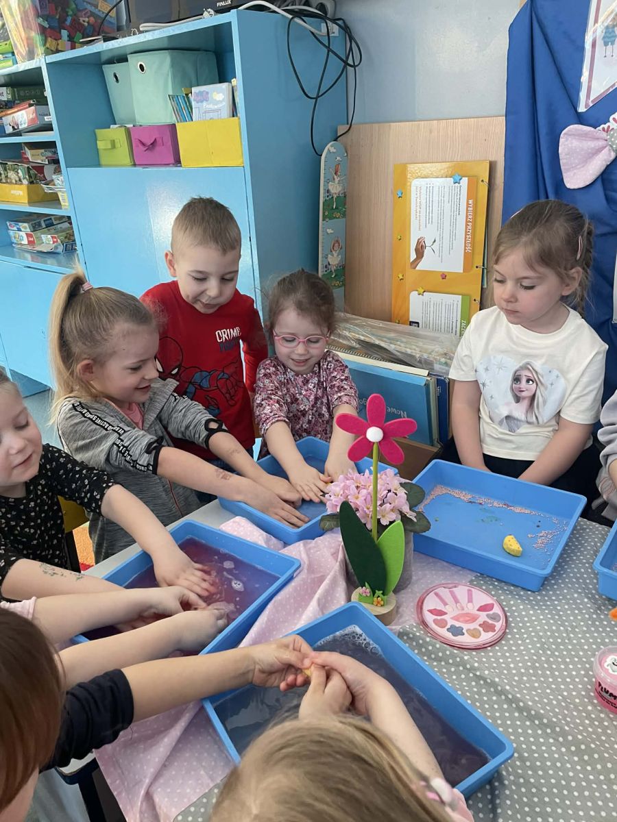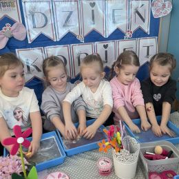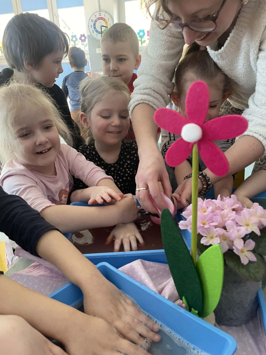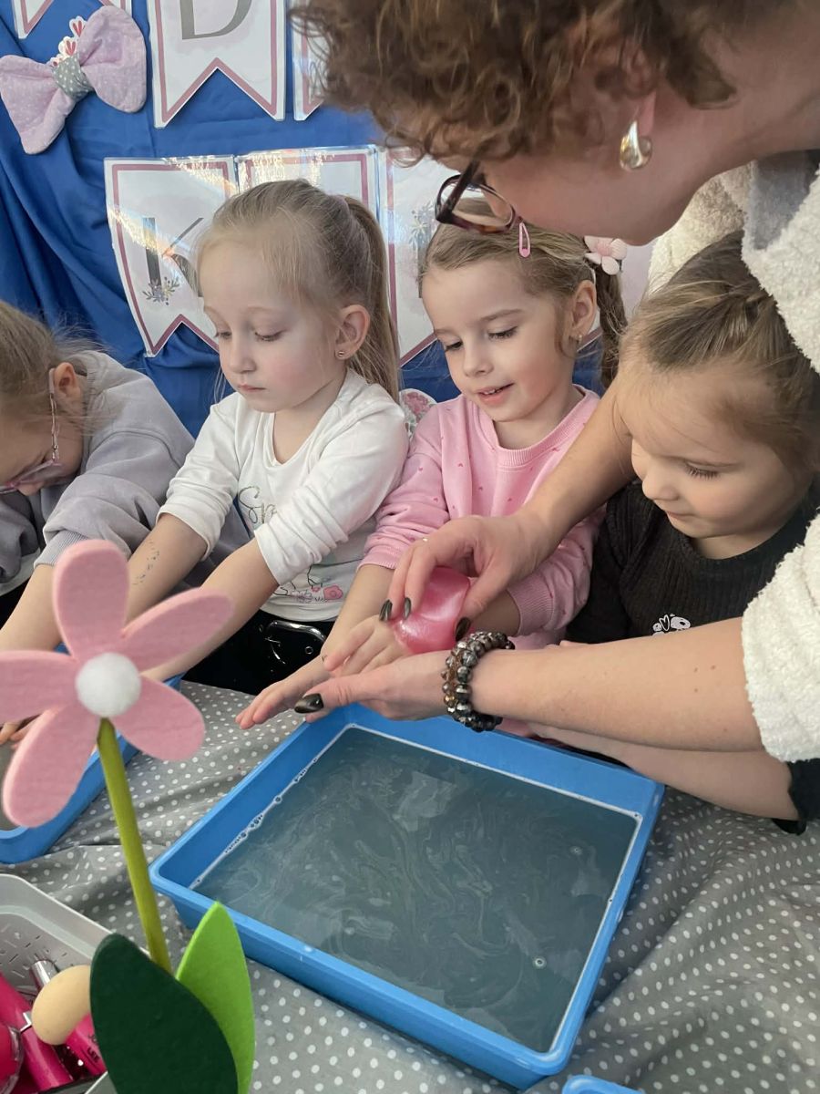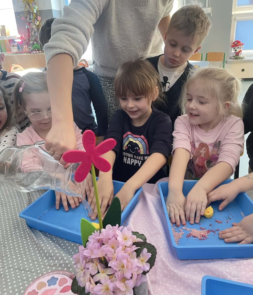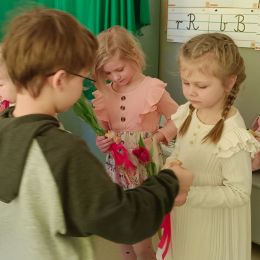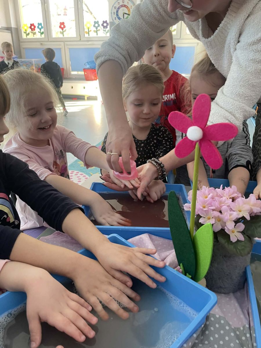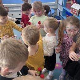 Dzień Kobiet upłynął w radosnej, pachnącej kwiatami, miłej atmosferze. Chłopcy wręczyli dziewczynkom kwiaty również te wykonane własnoręcznie, upominki oraz złożyli serdeczne życzenia. W grupie 2 na małe damy czekało „spa dla dłoni”, malowanie twarzy, a dziewczynki tworzyły kolorowe bransoletki z koralików. W starszych grupach to mali mężczyźni wykonali biżuterię dla koleżanek. Wspólna zabawa sprawiła wszystkim wiele radości i była okazją do okazania życzliwości oraz uprzejmości wobec innych. 🌷✨