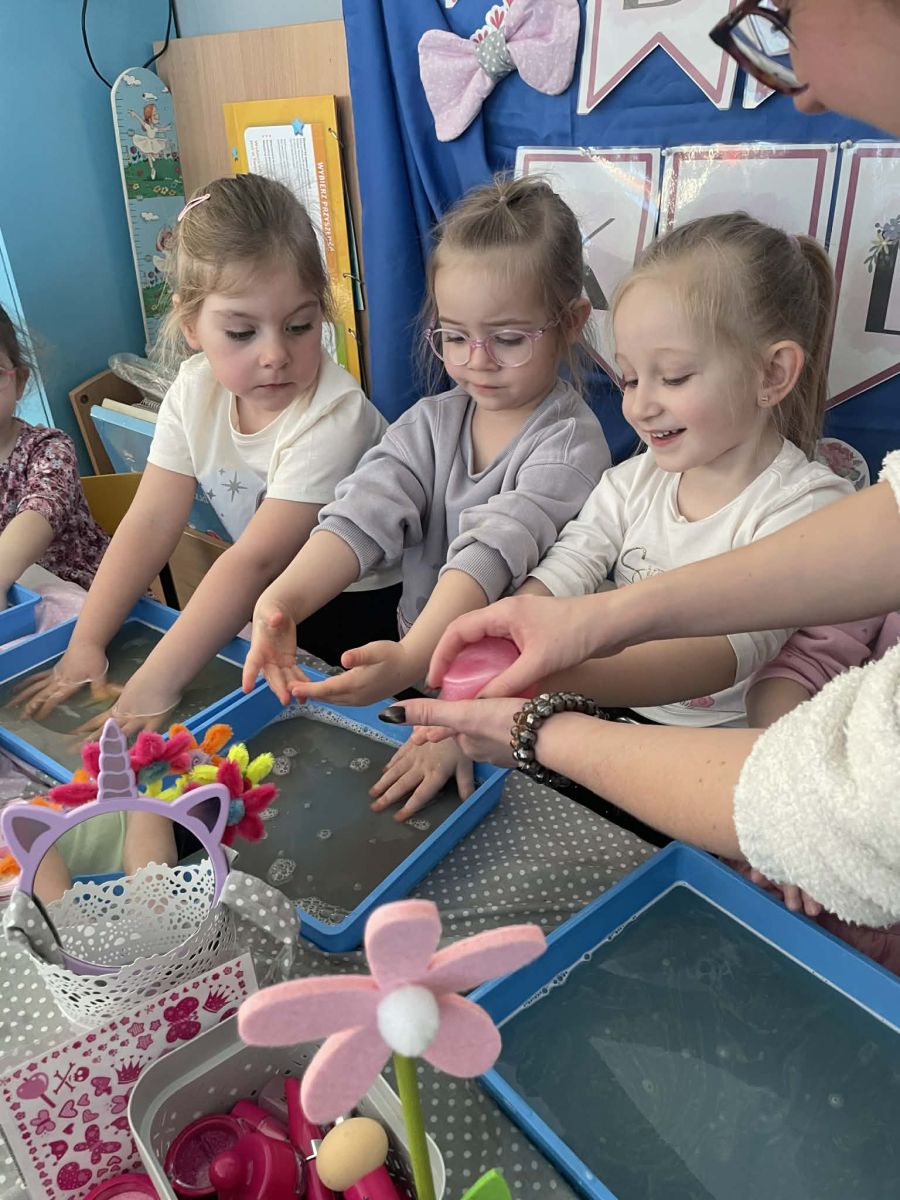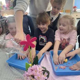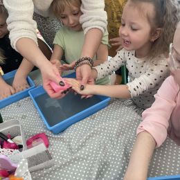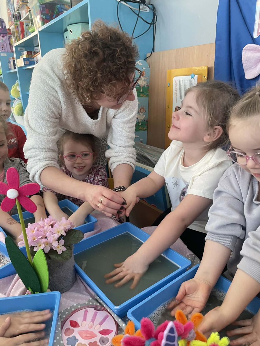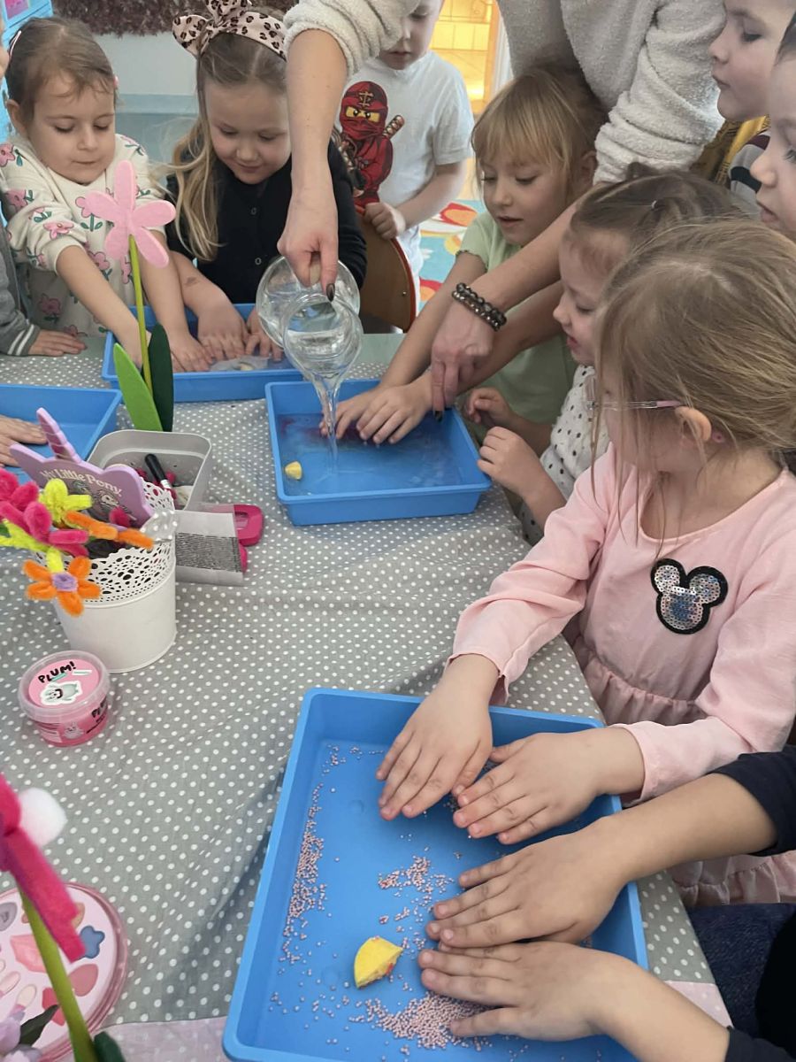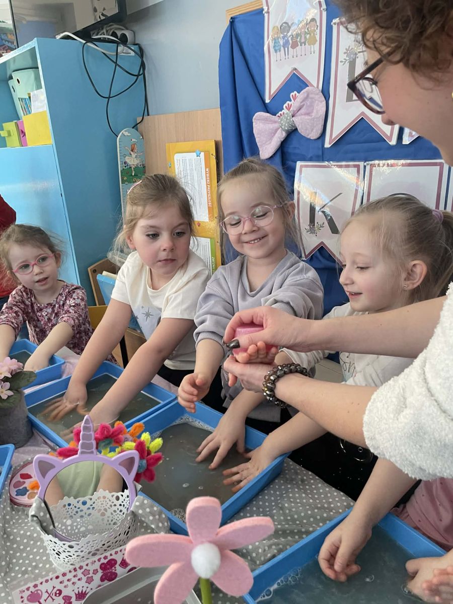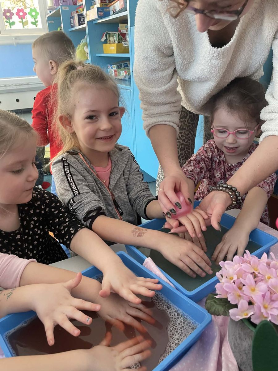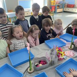 Dzień Kobiet upłynął w radosnej, pachnącej kwiatami, miłej atmosferze. Chłopcy wręczyli dziewczynkom kwiaty również te wykonane własnoręcznie, upominki oraz złożyli serdeczne życzenia. W grupie 2 na małe damy czekało „spa dla dłoni”, malowanie twarzy, a dziewczynki tworzyły kolorowe bransoletki z koralików. W starszych grupach to mali mężczyźni wykonali biżuterię dla koleżanek. Wspólna zabawa sprawiła wszystkim wiele radości i była okazją do okazania życzliwości oraz uprzejmości wobec innych. 🌷✨