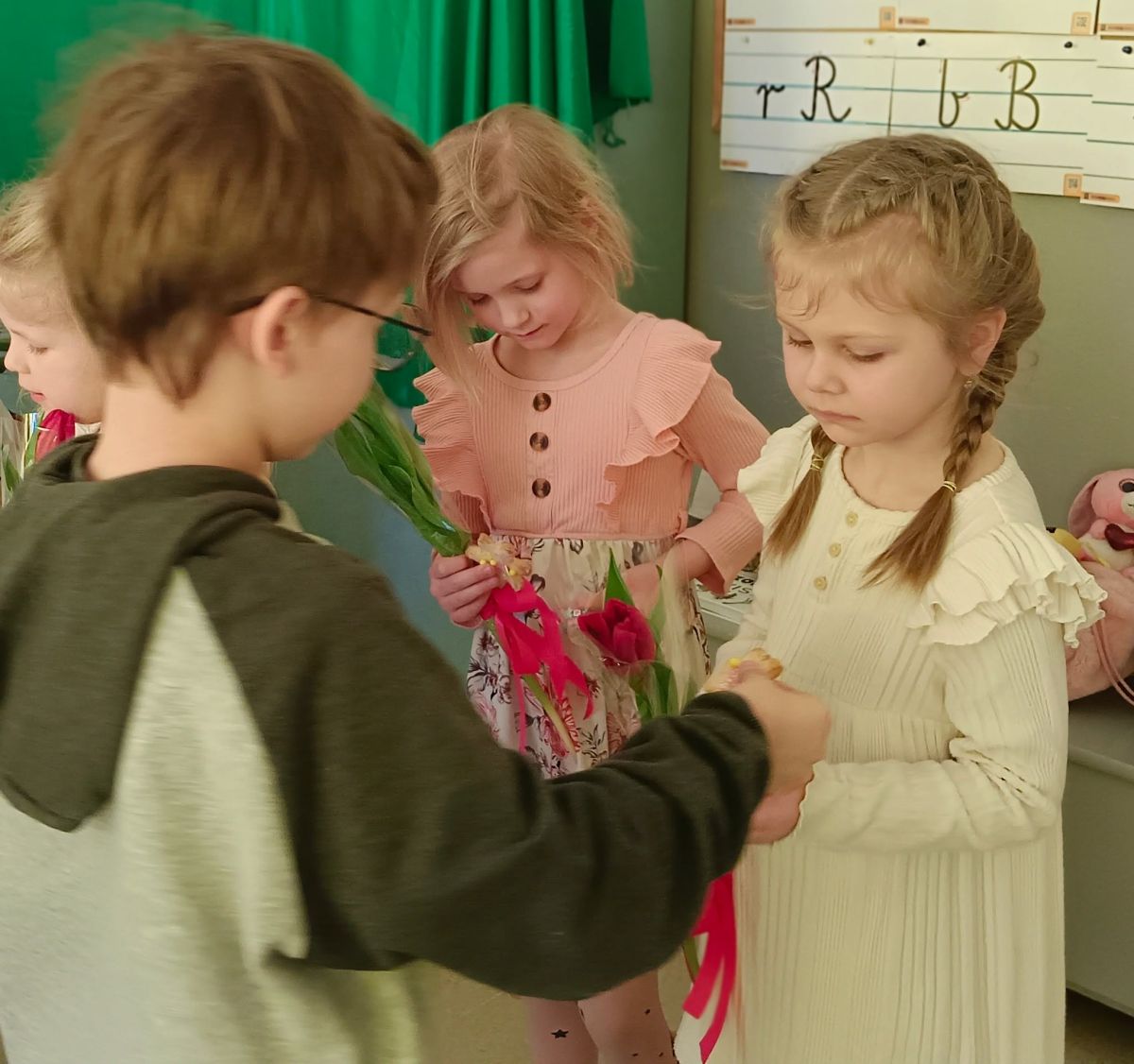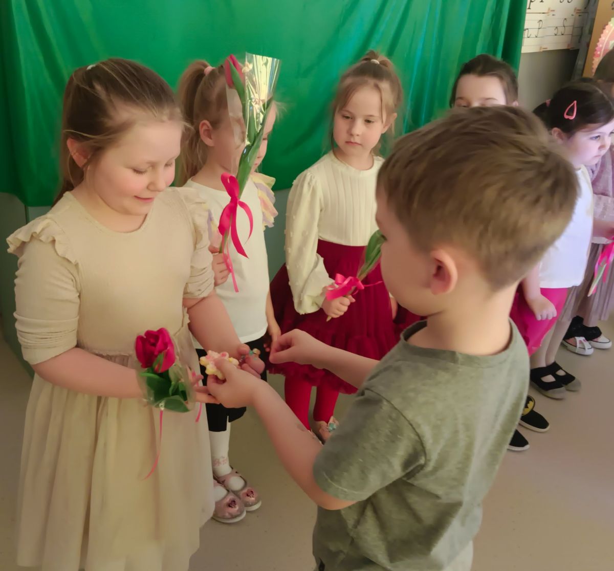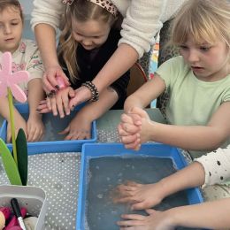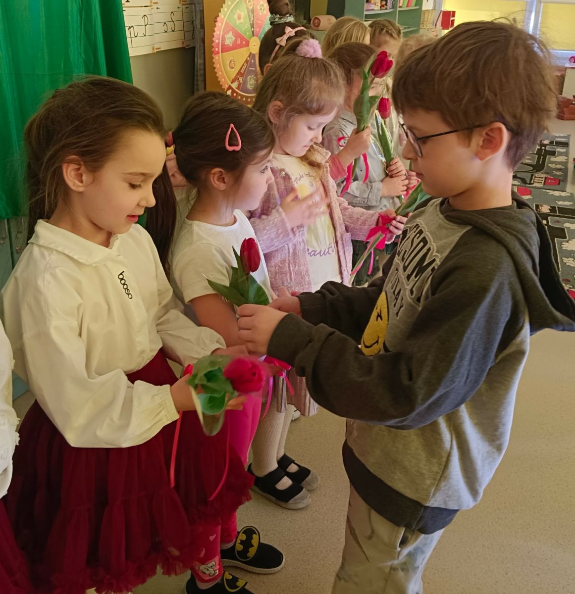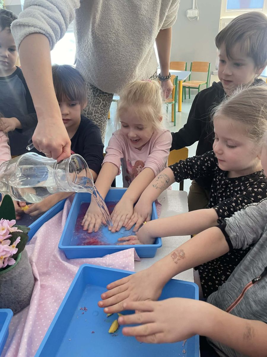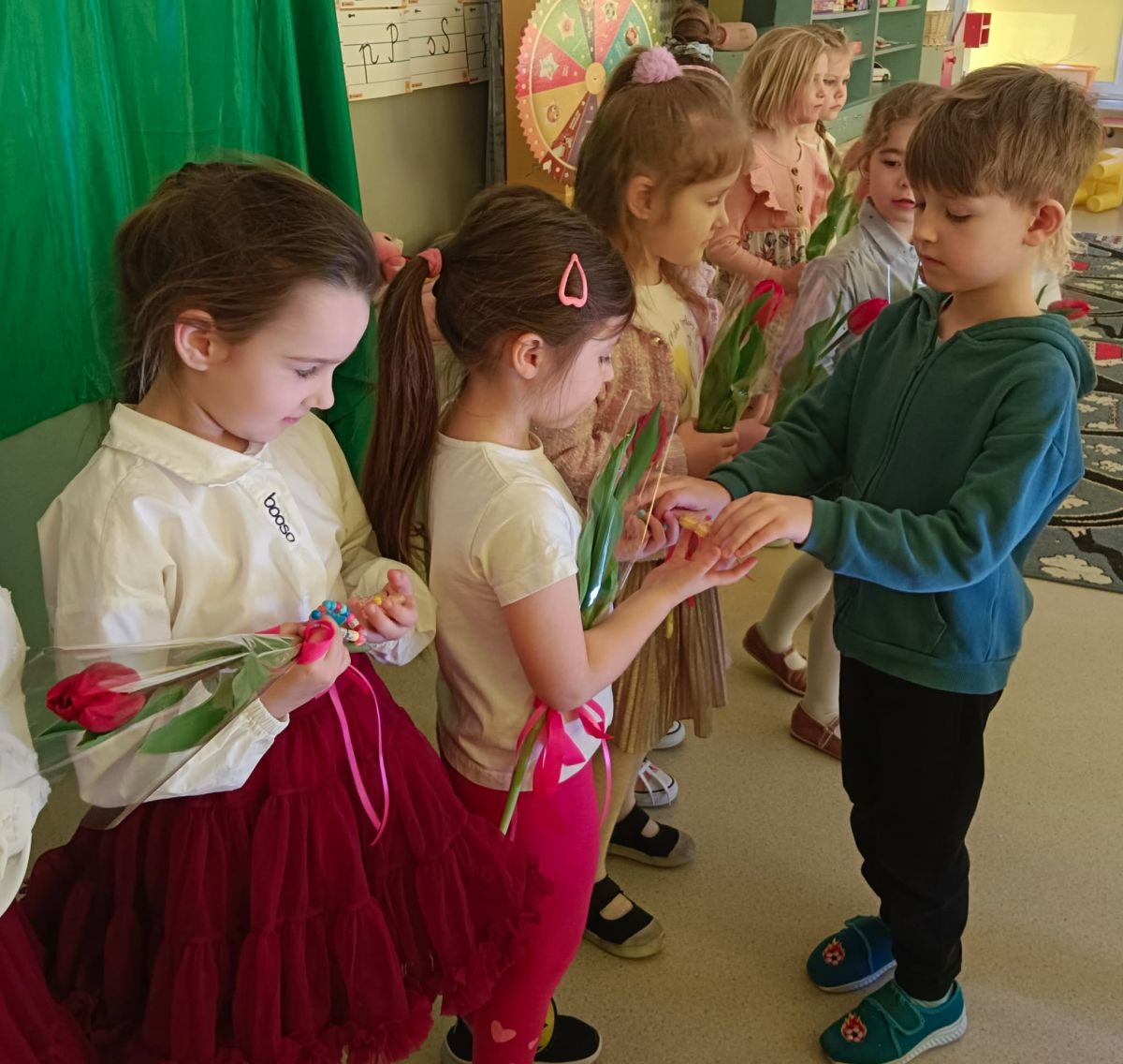 Dzień Kobiet upłynął w radosnej, pachnącej kwiatami, miłej atmosferze. Chłopcy wręczyli dziewczynkom kwiaty również te wykonane własnoręcznie, upominki oraz złożyli serdeczne życzenia. W grupie 2 na małe damy czekało „spa dla dłoni”, malowanie twarzy, a dziewczynki tworzyły kolorowe bransoletki z koralików. W starszych grupach to mali mężczyźni wykonali biżuterię dla koleżanek. Wspólna zabawa sprawiła wszystkim wiele radości i była okazją do okazania życzliwości oraz uprzejmości wobec innych. 🌷✨