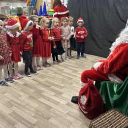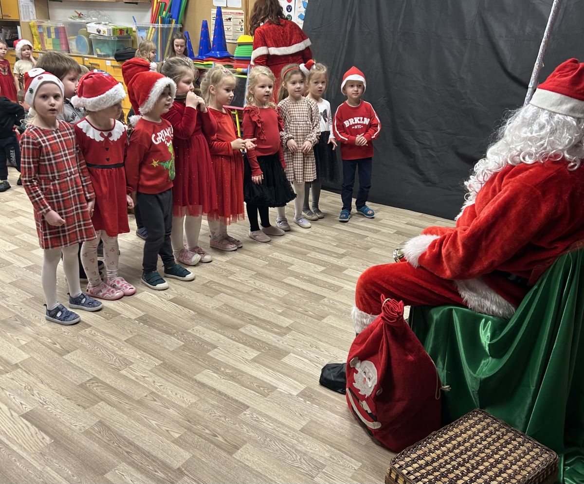 W piątek przedszkole odwiedził długo wyczekiwany Gość – święty Mikołaj. Gdy tylko pojawił się w sali dzieci przywitały go uśmiechem i gromkimi brawami. Każda z grup przygotowała dla Mikołaja piękną piosenkę, którą odśpiewała z prawdziwym zaangażowaniem. Po spotkaniu przedszkolaki wróciły do sal, gdzie czekały wyjątkowe upominki. Ten dzień pełen emocji i magicznej atmosfery na długo pozostanie w pamięci. 🎅✨