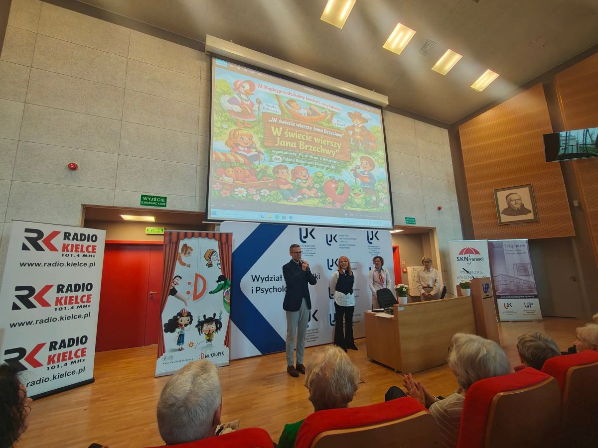 W dniu 15 kwietnia, w auli Uniwersytetu Jana Kochanowskiego odbył się IV Międzyprzedszkolny Konkurs Recytatorski poświęcony twórczości Jana Brzechwy. Wydarzenie zostało zorganizowane we współpracy naszego przedszkola z Zakładem Badań nad Edukacją UJK.