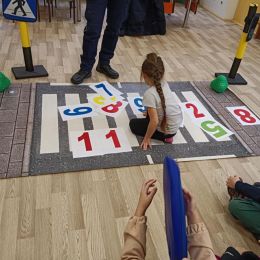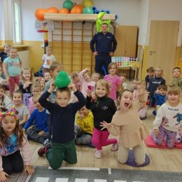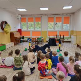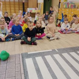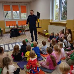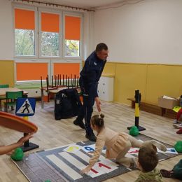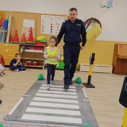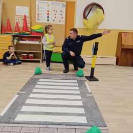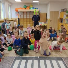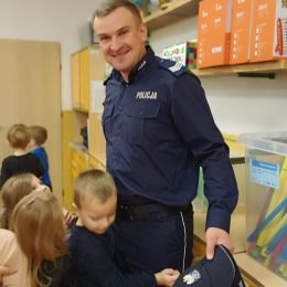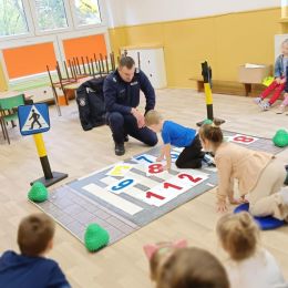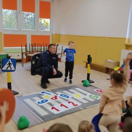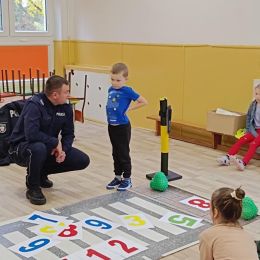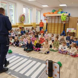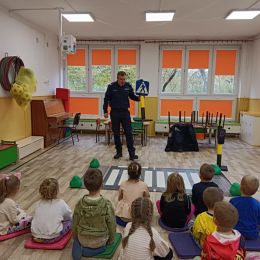 Przedszkolaki uczestniczyły w spotkaniu z funkcjonariuszem Policji 🚓 - dowiedziały się, na czym polega praca policjanta oraz jak należy dbać o swoje bezpieczeństwo w domu, przedszkolu i na drodze. Policjant przypomniał zasady bezpiecznego poruszania się po ulicy, znaczenie sygnalizacji świetlnej.