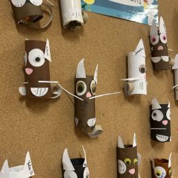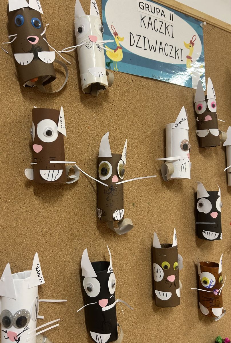 Z okazji Dnia Kota poznaliśmy wiele ciekawostek o tych niezwykłych zwierzętach – ich zwyczaje, sposób poruszania się oraz budowę ciała. Przedszkolaki wykonały również własne kotki z rolek po papierze, rozwijając kreatywność i sprawność manualną.