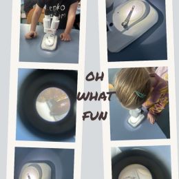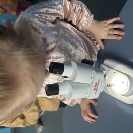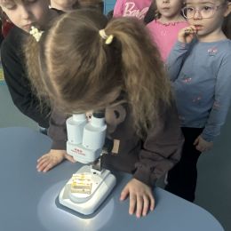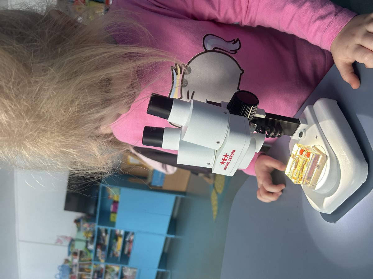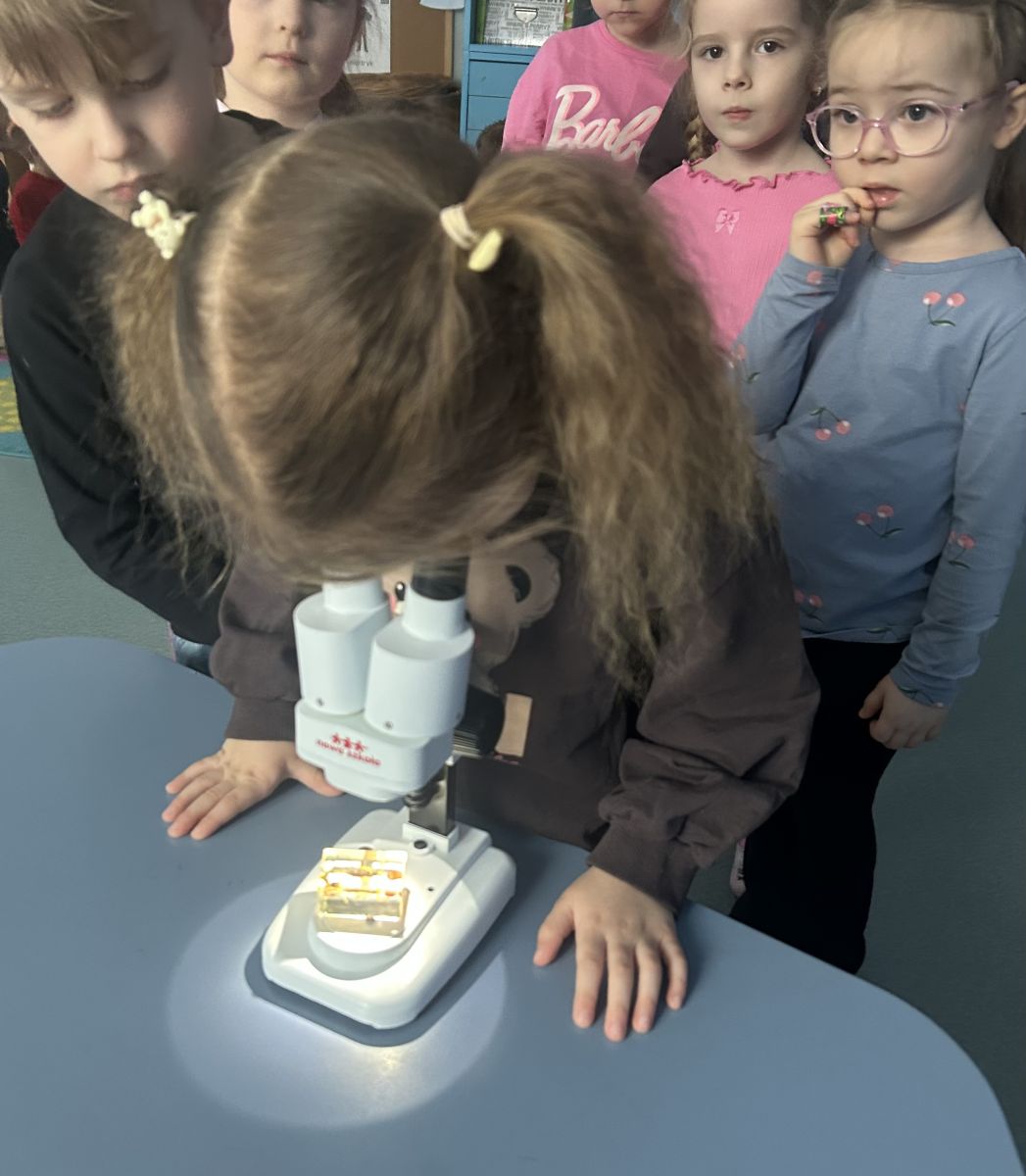 🔬 Obserwacje pod mikroskopemMali badacze z wielkim zainteresowaniem oglądali pod mikroskopem sierść kota, model skorpiona, topniejący śnieg, liście, nasiona oraz rysik kredki. To była doskonała okazja do rozwijania umiejętności obserwacji i wyciągania wniosków.