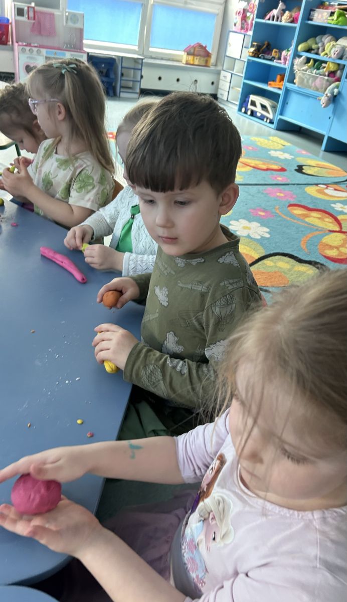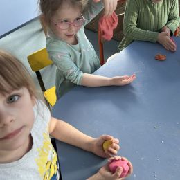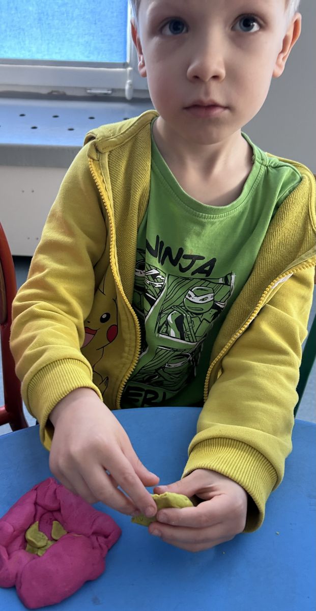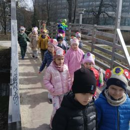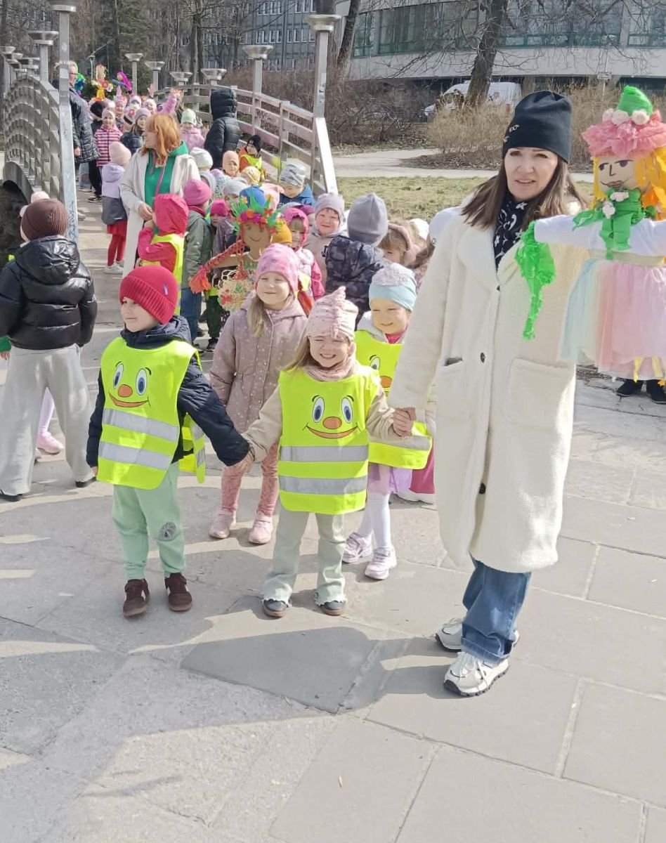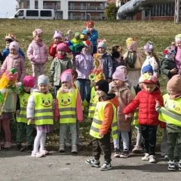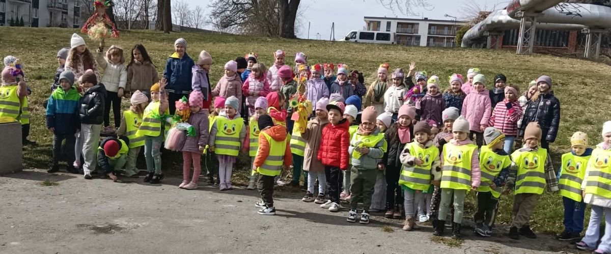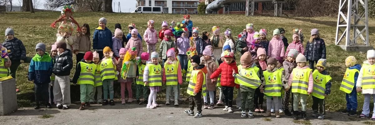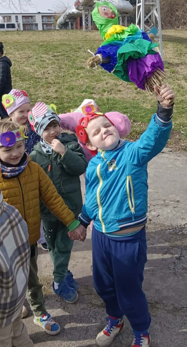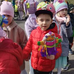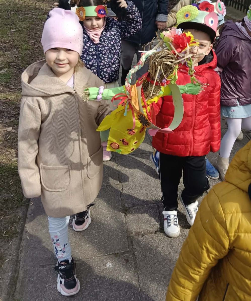 Przedszkolaki radośnie powitały wiosnę! Wyruszyły w  kolorowy pochód z marzannami przy muzyce 🎶, rozpoznawały wiosenne kwiaty, bawiły się pachnącą, własnoręcznie wyrobioną ciastoliną oraz rozwiązywały zagadki. Nie zabrakło twórczych działań – powstały piękne opaski i kwiaty z kolorowym szkiełkiem.