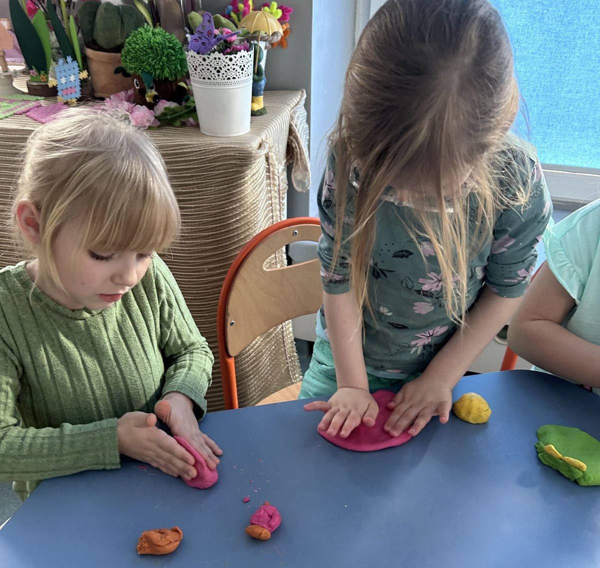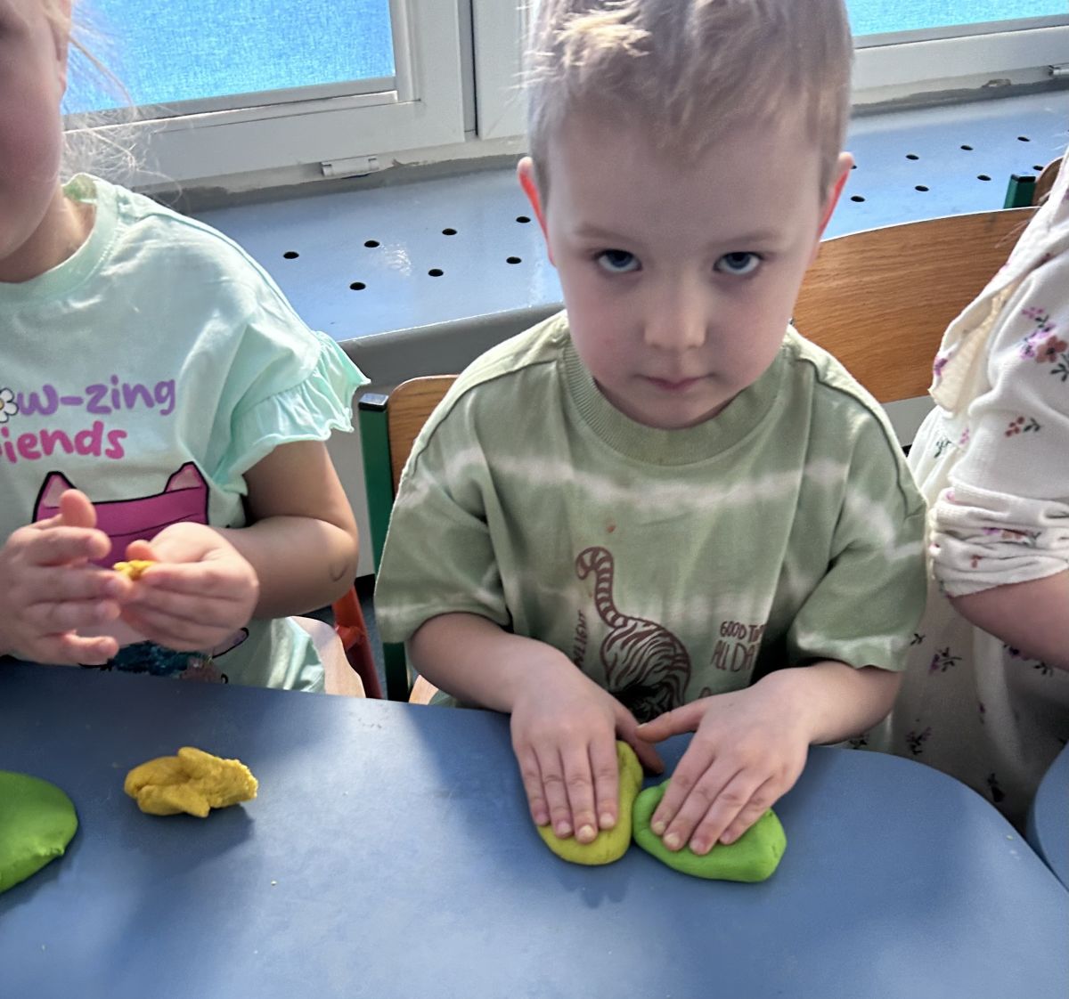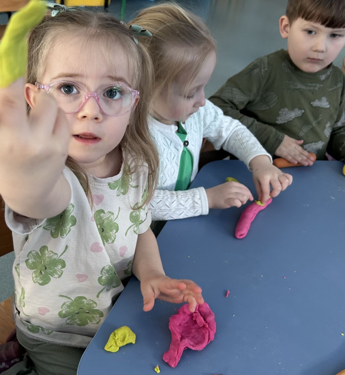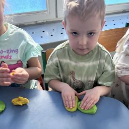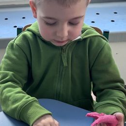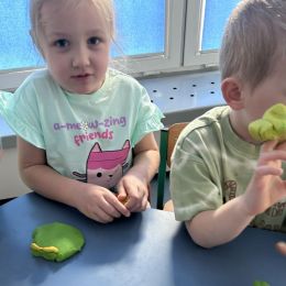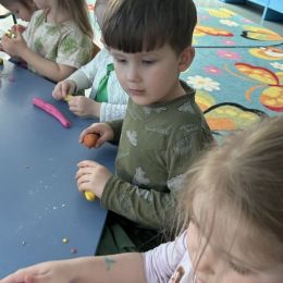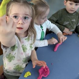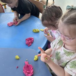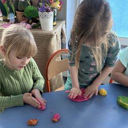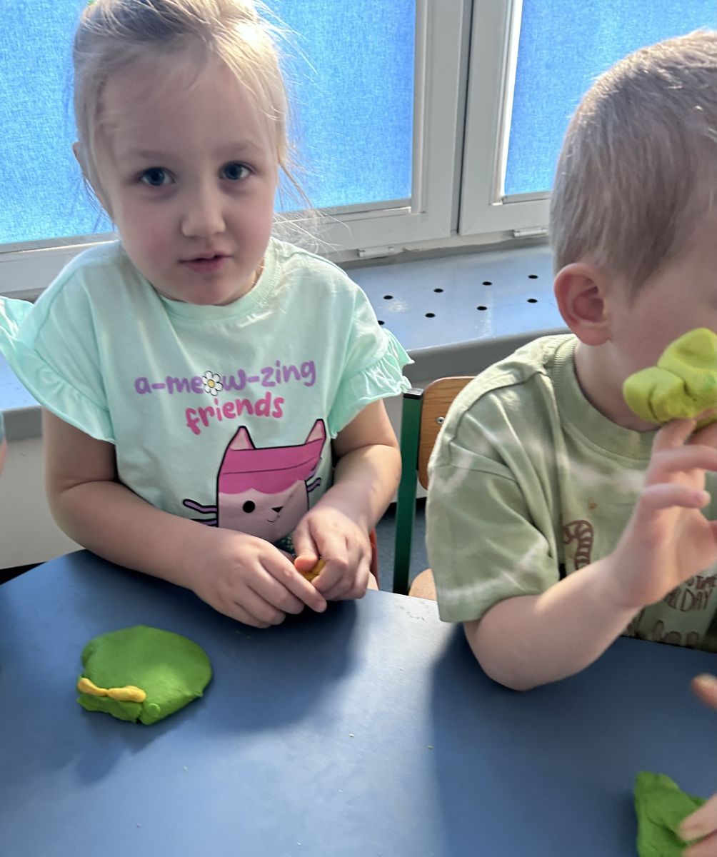 Przedszkolaki radośnie powitały wiosnę! Wyruszyły w  kolorowy pochód z marzannami przy muzyce 🎶, rozpoznawały wiosenne kwiaty, bawiły się pachnącą, własnoręcznie wyrobioną ciastoliną oraz rozwiązywały zagadki. Nie zabrakło twórczych działań – powstały piękne opaski i kwiaty z kolorowym szkiełkiem.